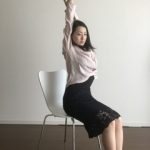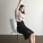 *肩と腕を引き上げ、上半身を倒して、ウエストを気持ちよく伸ばすのでくびれにも効いてきます。